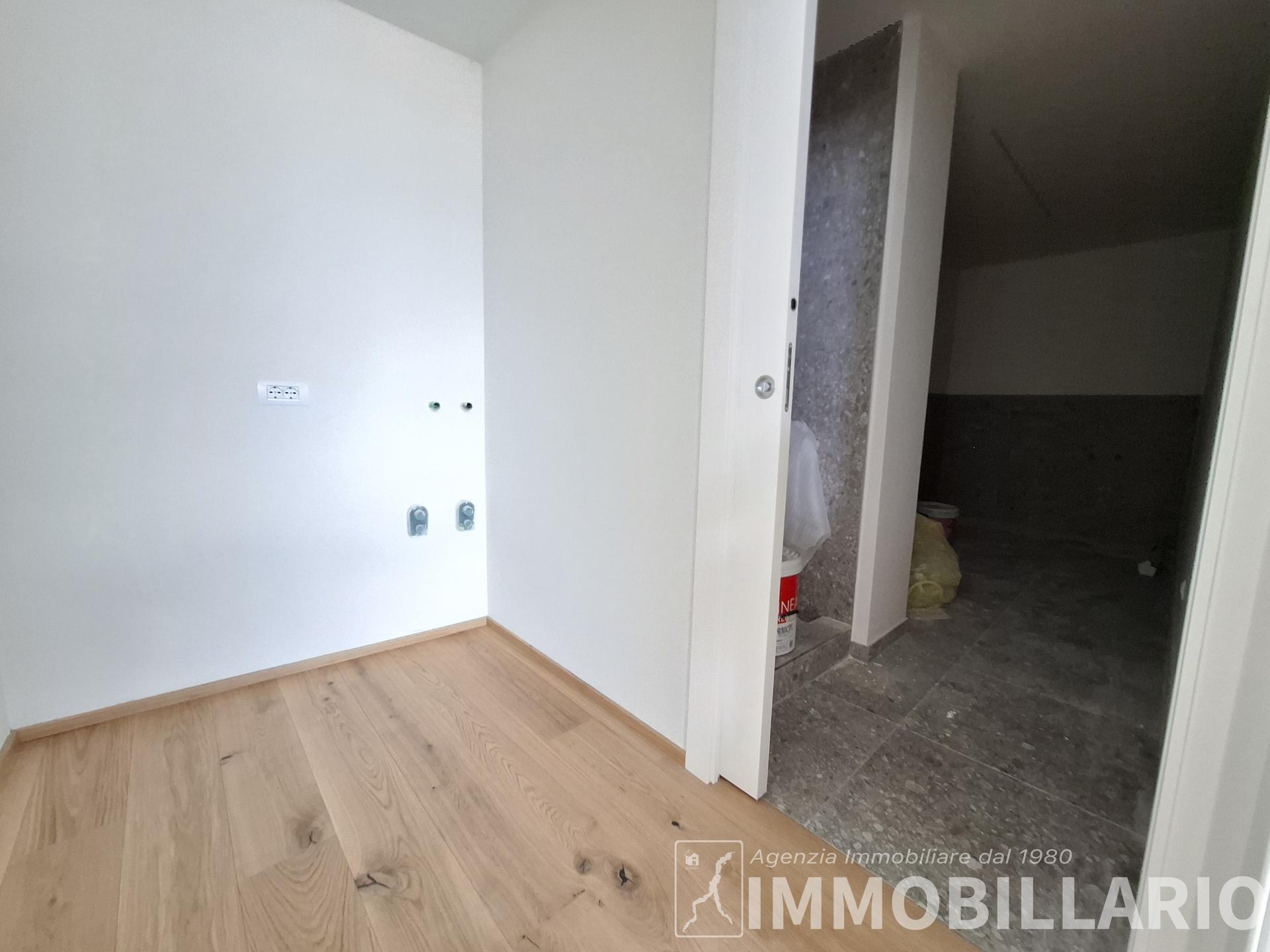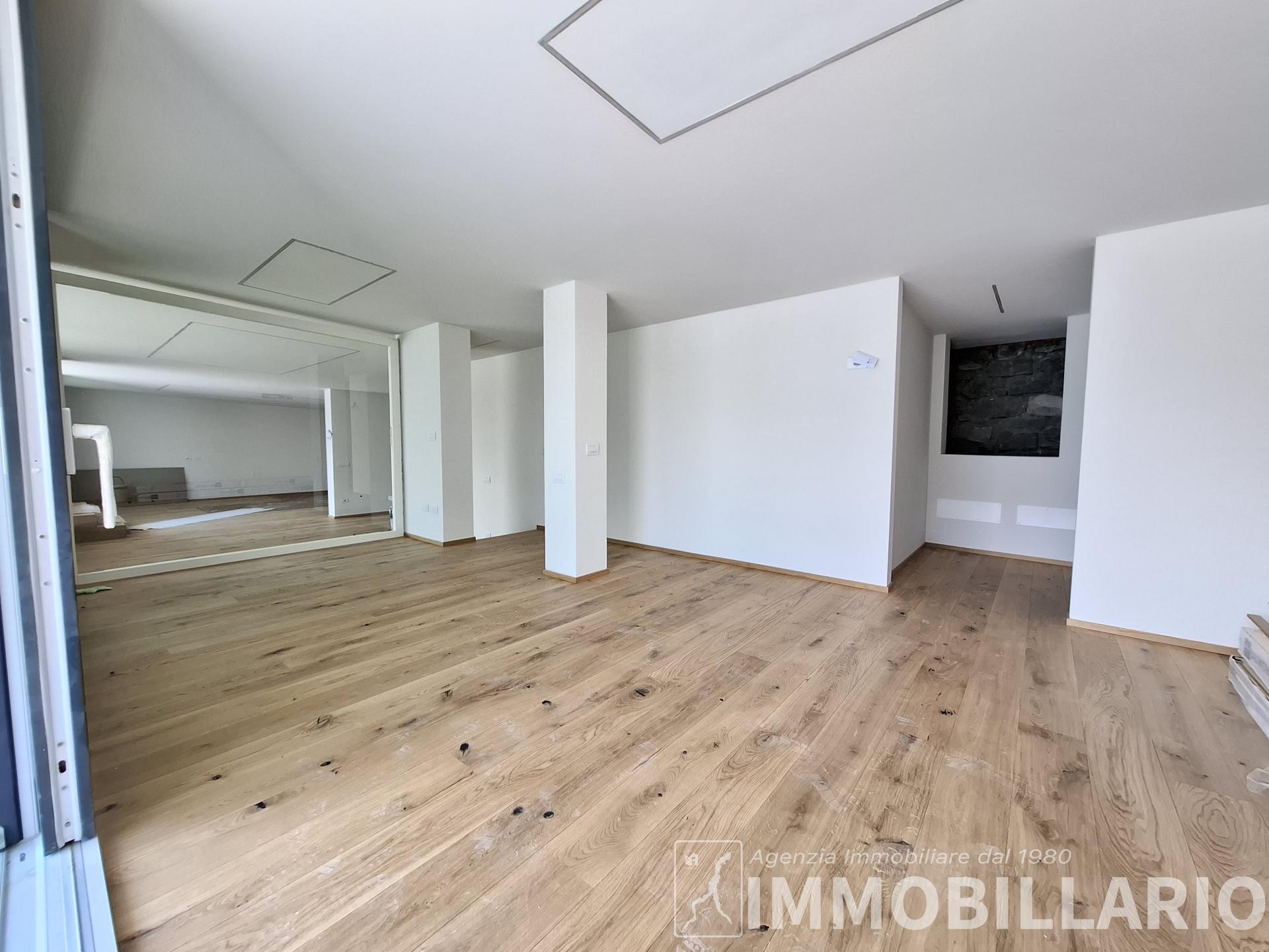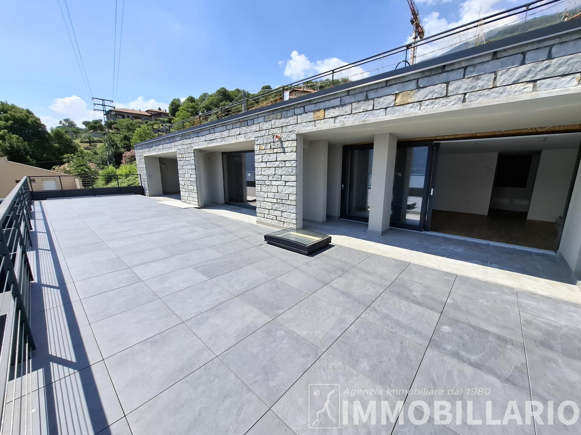 Disposizione degli ambienti L'immobile si sviluppa in modo funzionale su un unico livello. La zona giorno è dominata da un grande living con sala da pranzo, valorizzato da ampie vetrate continue che affacciano direttamente sul lago, e da una cucina abitabile separata. La zona notte è composta da una camera matrimoniale di generose dimensioni, un bagno finestrato, un locale lavanderia e un comodo ripostiglio. L'attico viene venduto da arredare, offrendo al futuro acquirente la massima libertà di personalizzare gli interni e scegliere il design più in linea con il proprio stile.